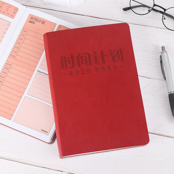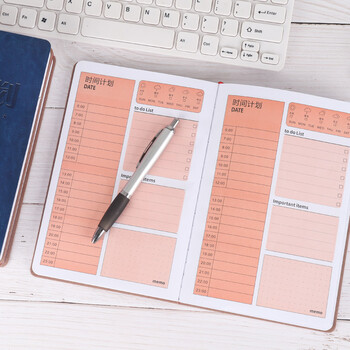 XYBP每日计划日程本棕色A5皮革效率日志本360页1年版加厚款时间管理本
