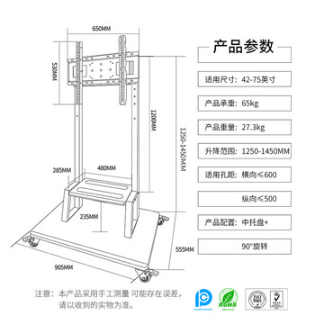 电视移动落地支架推车品牌通用XZ75
