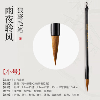 六品堂狼毫毛笔学生中楷大楷书法笔练习手札国画笔湖笔 小楷 1支装