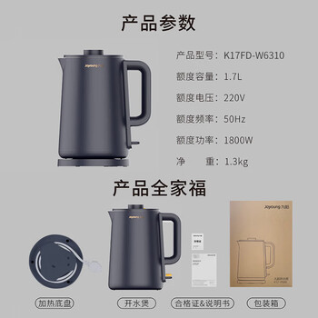 九阳(Joyoung)热水壶烧水壶1.7L无缝内胆双层锁温防烫家用电热水壶K17FD-W6310