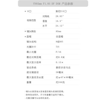 永诺YN85mm F1.8S索尼口全画幅中远摄定焦自动对焦镜头