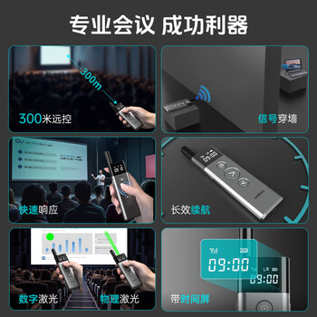 ASiNG大行A10 大场景会议厅300米穿墙远控ppt翻页笔 演讲笔 led液晶屏激光笔聚光放大绿色双激光带U盘