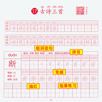 绍泽文化 小学生三年级下册同步生字描红本 人教版生字练字本 儿童练字帖