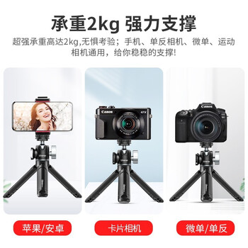 ulanzi优篮子 双冷靴云台三脚架套装可延长手持vlog支架微单反相机通用网红直播拍照小型便携桌面三角架