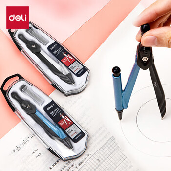 得力(deli)撞色金属圆规防滑握把学生高考中考金属自动铅笔圆规套装绘图工具 颜色随机开学必备文具