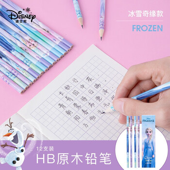迪士尼(Disney)【热门商品】铅笔 文具12支HB原木书写铅笔 小学生铅笔写字笔 儿童卡通铅笔 冰雪奇缘E0097F