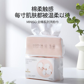 名创优品(MINISO)全棉系列洗脸巾一次性棉柔巾干湿两用洗面巾洁面巾120抽*1包