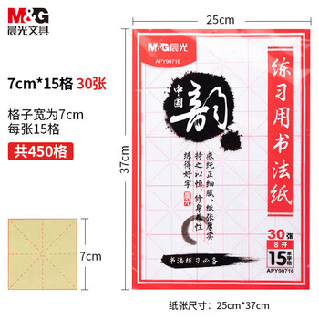 晨光(M&G)文具15格/8开学生书法练习用纸 初学者毛笔字练习纸(全木浆) 文房四宝 30张/包APY90716