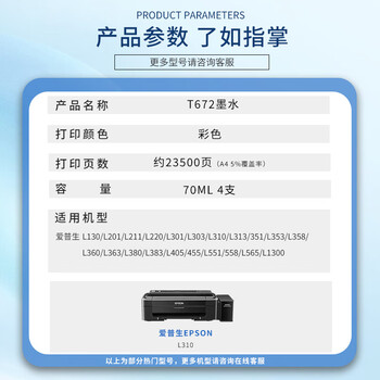 新绿天章672墨水L360适用爱普生EPSON L351 L130 L313 L1300 L310 L380 L385 L301 L1455打印机墨水四色套装
