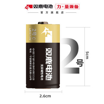 双鹿 2号碱性干电池2粒装 无汞环保 经济实惠 适用于手电筒/录音机/收音机/遥控器 2号/中号/C型/R14P