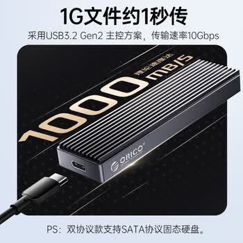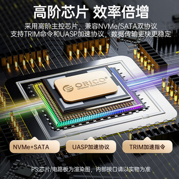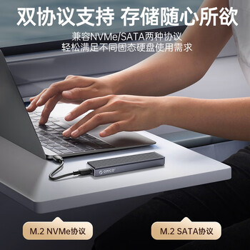 奥睿科(ORICO)M.2 NVMe/SATA双协议固态硬盘盒10Gpbs Type-C移动硬盘盒 全铝CNC散热 适用笔记本电脑扩容 M2PJM