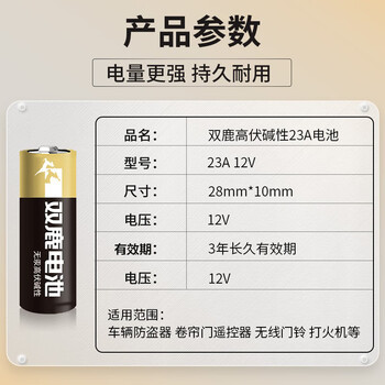 双鹿 23A 12V高伏碱性电池 适用车门遥控器/车辆防盗器/电子词典/手表/血糖仪/遥控器等