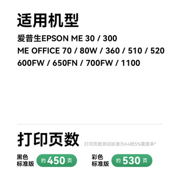 彩格适用EPSON爱普生T1091墨盒 ME30 ME300 ME360 ME70 ME510 ME520 ME1100 600F t109打印机墨盒