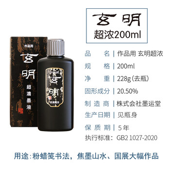 【全网低价】玄明日本进口玄明墨汁 超浓200ml墨液树脂胶毛笔字墨水 文房四宝书法国画作品用墨水
