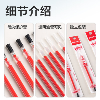 得力(deli)0.7mm拔帽中性笔芯子弹头替芯 办公用品 红色20支/盒S761