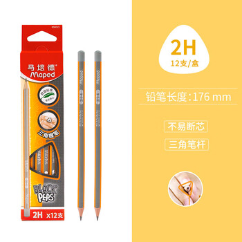 马培德(Maped)经典绘图铅笔2H 三角杆铅笔书法练字素描绘图铅笔 学生儿童正姿书写练字笔 850023CH【12支/盒】