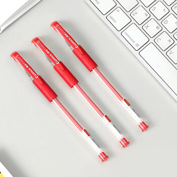 齐心(Comix)0.5mm红色经典办公子弹头拔帽中性笔 水笔签字笔12支/盒 工具 EG6600