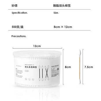 妙倩棉签双头圆尖1000支掏耳朵成人化妆棉棒盒装独立包装一次性棉签