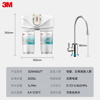 3M净水器家用净水机无桶0废水矿物质直饮智能过滤器 前置SDW4067T-CN型
