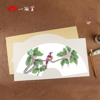 一海堂 文化 生宣卡纸 长方形卡纸宣纸国画扇面工笔画书法纸水彩形镜片加厚 扇面外麻内白-生宣 50*30cm*10张