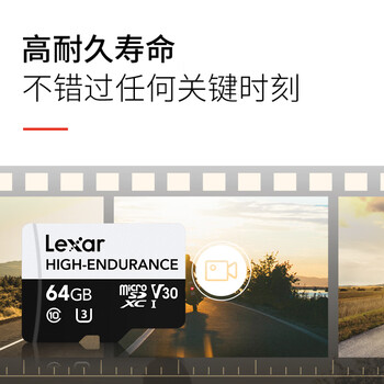 雷克沙(Lexar)64GB TF(MicroSD)存储卡 C10 U3 V30 读速100MB/s 行车记录仪内存卡 安防监控专用高度耐用
