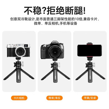 ulanzi 优篮子迷你双冷靴云台三脚架可延长多功能手持vlog支架微单反相机通用直播拍照便携桌面三角架