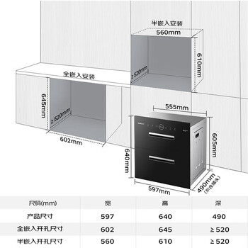 康宝(Canbo)118L三层不锈钢磐石消毒柜嵌入式家用大容量板架巨量消毒碗柜EN321