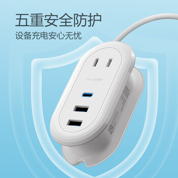 公牛(BULL)20W PD快充差旅插座/插线板/插排/接线板 出行miniType-c+USB+2插孔 全长0.9米 GNV-UU5202无开关