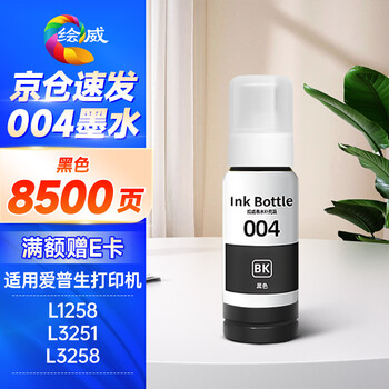 绘威适用爱普生004墨水L3251 L3258 L3255 L3153 L3118 3158 3151 3558 3119 3256 3218 1119打印机墨水 黑色