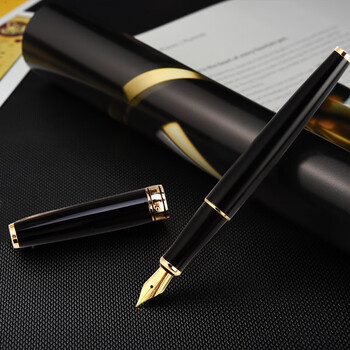 毕加索(pimio)钢笔签字笔商务办公礼品 成人学生练字 男女生日礼物EF铱金墨水笔何塞系列722亮黑金夹