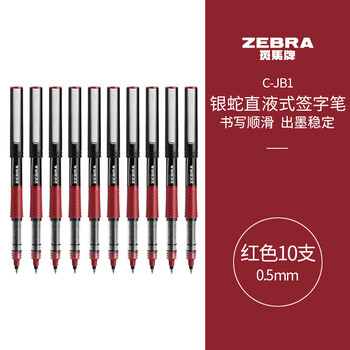 斑马牌(ZEBRA)银蛇直液式签字笔 0.5mm拔帽中性笔 学生批改笔记 办公用红笔 C-JB1 红色 10支装