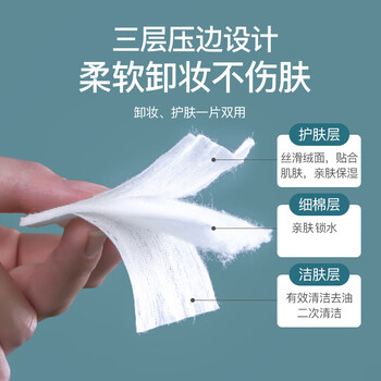 轻呵卸妆棉厚款化妆棉222片 拍水敷脸三层压边湿敷卸妆棉片