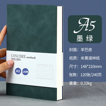 嘉然恒 商务笔记本本子a5简约工作记事本办公文具会议记录本加厚学生考研日记本便携广告位定制logo-a5墨绿色