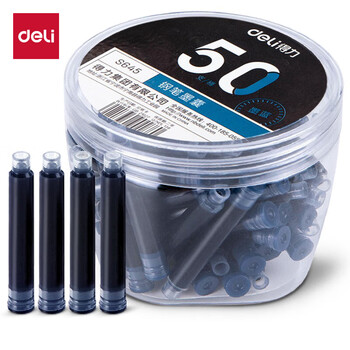 得力(deli)钢笔墨囊 学生钢笔墨水笔墨囊 可替换 50支/盒大包装S645墨蓝