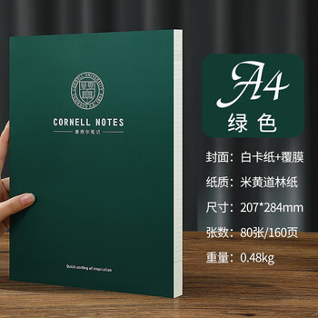 嘉然恒 A4康奈尔本大号笔记本本子5R高效记忆思维导图学习本复习考研用本随堂笔记本-横线款-墨绿