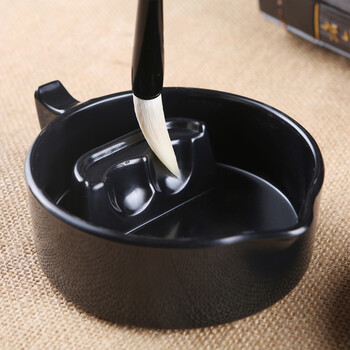 芬尚 学生多功能墨盒砚池 仿瓷防摔带盖砚台笔搁 可盛墨汁约150ml可搁毛笔可调色Φ10.5*5cm