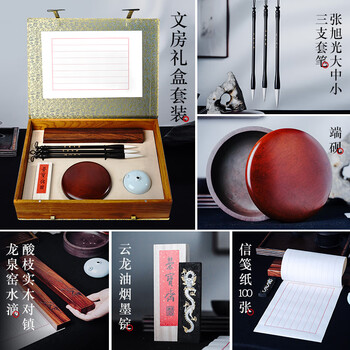 荣宝斋 文房四宝套装 毛笔墨纸砚全套 镇尺水滴墨锭砚台 高档书法收藏精品礼盒 文人雅客