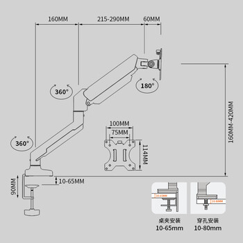 LUCKPRO气缸显示器支架 电脑支架 显示器支架臂 旋转电脑架 桌面升降显示器支架 底座增高架 屏幕支架