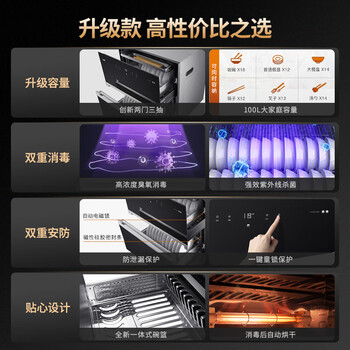华帝(VATTI)i13025消毒柜官方100升大容量嵌入式消毒碗柜家用 紫外线碗筷消毒 创新两门三抽 二星级消毒
