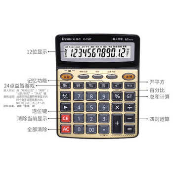 齐心(Comix)12位宽屏语音计算器 财务金融计算机 学生/办公用品 金色 C-1367
