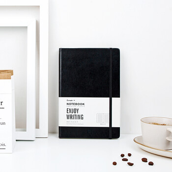 广博(GuangBo)A5/120张商务皮面笔记本绑带记事本办公硬面皮面本时尚会议记录本 黑色 GBP20001