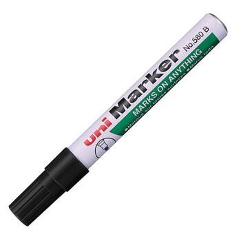 uni三菱 单头油性记号笔马克笔 斜头方嘴大头笔 580B 黑色单支装