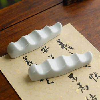 漢墨 波浪陶瓷笔架 毛笔挂多功能陶瓷笔搁镇尺镇纸 文房四宝毛笔架子