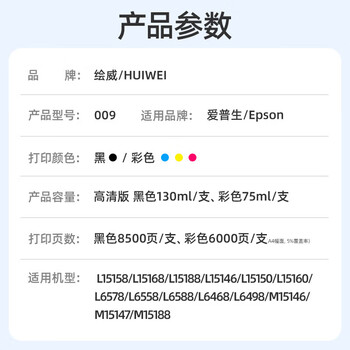 绘威适用爱普生009墨水L6468 L15158 L15168 L6498 L6558 L6578 L6588 L15188 epson墨仓式打印机墨水 蓝色墨水