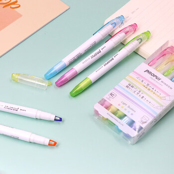 uni三菱 双头荧光记号笔 学生作业手账绘画标记笔彩色笔 细0.4mm粗4mm PUS-103T 1支/袋 浅紫色