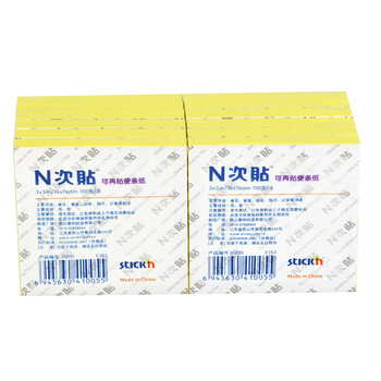 N次贴(STICKN)31005JD 可再贴便签纸/便利贴/百事贴(76×76mm) 黄色12本装