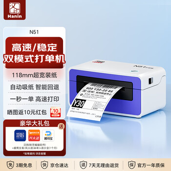 汉印(HPRT)N51高速可调热敏打印机 108mm快递电子面单热敏纸不干胶条码标签打印机