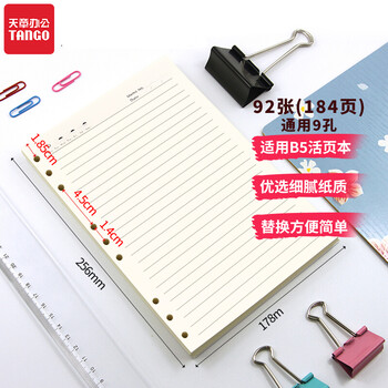 天章(TANGO)B5活页替芯纸横线款加厚100g 适用9孔活页本考研错题作业日常笔记会议记录可拆卸通用替换芯 92张