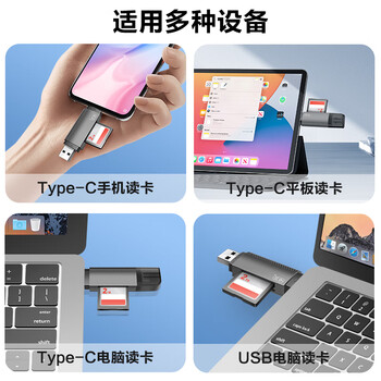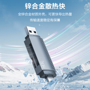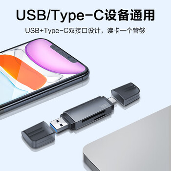 川宇锌合金USB/TypeC读卡器3.1高速SD/TF多功能 电脑/苹果/安卓手机支持单反相机无人机监控内存卡