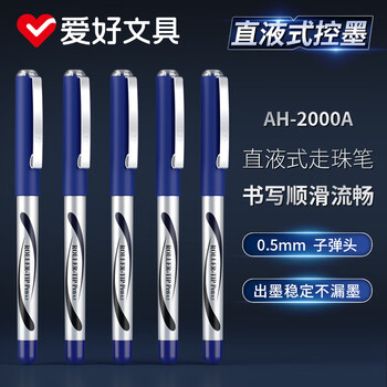 爱好(AIHAO)签字笔0.5MM子弹头直液式走珠笔中性笔蓝色大容量办公签字笔12支 AH2000